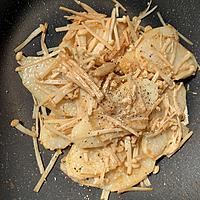 - 4 えのきがしんなりしたら中火のまま、しょうゆを入れ炒め合わせます。