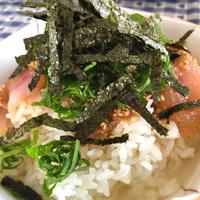 昨日の夕食であまった刺身用鯛使って昼ごはんに 一日落ちの鯛の臭みを胡麻が消してくれたようで絶品!あっさりランチに満悦