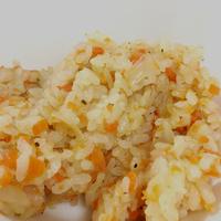 にんじんがたっぷり入ったシンプルなピラフです。オレンジ色が鮮やかで食卓を華やかにしてくれる一品です。 炊飯器で簡単に作れるので、忙しい時にもオススメです。にんじん嫌いも克服できるかも。 是非試してみてください。