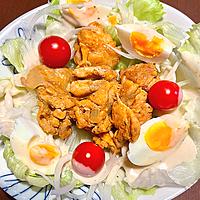 タンドリーチキンを使った彩り豊かなサラダです。お肉と野菜が一緒に摂れるのでボリュームもあります。たくさんの野菜と一緒にお肉を召し上がってください。ドレッシングはお好みの量をおかけください。サニーレタスの代わりにレタスでも美味しく召し上がれます。