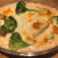 今晩のおかずに、明太クリームグラタンはいかがでしょうか。明太子の旨味がしっかり馴染んだクリームソースに、チーズをたっぷりかけて香ばしく焼き上げると、とても美味しいですよ。塩麹を使うことで、味付けも簡単なので、ぜひお試しくださいね。