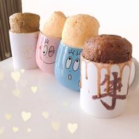加熱すると生地が膨らむため、高さがある電子レンジ対応のマグカップをお使いください。 ご使用の電子レンジの機種や耐熱容器の種類、食材の状態により加熱具合に誤差が生じます。様子を確認しながら、必要に応じて加熱時間を調整してください。 加熱後、竹串などを刺して生の生地がつかなければ、中まで火が通った目安です。