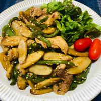 - 4 2、(A)を加えて中火でさっと炒め、全体に味が絡んだらお皿に盛り付け完成です。