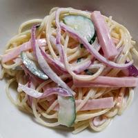 シャキシャキとした食感のキュウリと玉ねぎが爽やかな、サラダ感覚で楽しめるパスタです。ベースとなるマヨネーズと生クリームのコクにレモン汁の酸味が効いており、さっぱりとした味わい。ハムの代わりにカニカマやツナを使ったアレンジも好評です。ケチャップやニンニクを加えるとコクと深みが増して絶品に。子供から大人まで楽しめる一品で、作り方も簡単です。