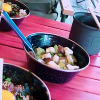 火を使わず外でも楽にできそうだったので、キャンプで作りました。