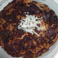 ほぼ半量でチーズは溶けるスライス多めで自分用に。裏返すのを失敗して見た目あれですが😅味は思った以上に美味しかった❗