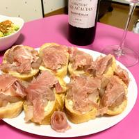 お、美味しかった!生ハムのしょっぱさと、赤ワインとたっぷりの砂糖で煮たりんご、それらを調和してくれるチーズ...。ブラックペッパーも良くマッチしてます。ついついワインに手が伸びてしまいました(笑)