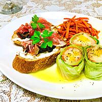 意外な組み合わせですが想像以上に美味しく、スパークリングワインととても合い感動しました。余った煮りんごを単独で食べても美味しいです。白ワインで煮込み、事前にフランスパンは4分トーストしました。