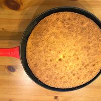 - 6 スキレット鍋にバターを塗り、5を流し入れて170℃に予熱したオーブンで20分焼いて中まで火が通ったら出来上がりです。