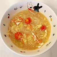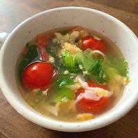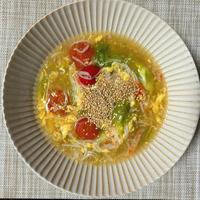 二日酔いにさっぱりしたスープレシピを探していたので参考にしました。トマトと卵と春雨がなかったので大分違うかも知れませんが、レタスとカニカマの相性がよくとても食べやすかったです!気持ち胡椒を多めにいれるとメリハリが出て口直しになると思います!