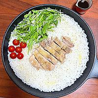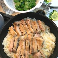 ワンパン調理の手軽さが最大の魅力で、フライパンで炊き込むだけの簡単レシピです。お米と一緒に生姜をたっぷり入れて炊くと、ふっくらジューシーな鶏肉とお米に香り高い風味が移ります。パクチーやレモンを添えれば本格的なエスニック料理の完成です。タレは濃い目なので少しずつかけて調整するのがコツ。むね肉でもおいしく仕上がります。