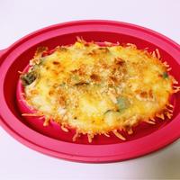 - 5 耐熱容器に4を入れ、ピザ用チーズをのせて、オーブントースターで焼き色がつくまで5分程加熱します。