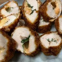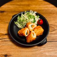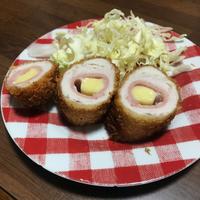 スライスチーズとハムを鶏むね肉で巻いて揚げました。淡白な鶏むね肉とスライスチーズを組み合わせているのでコクがあって美味しいですよ。今晩のおかずに、ぜひお試しください。