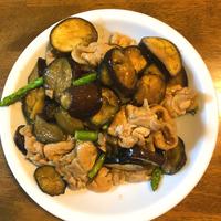 - 3 オリーブオイルで茄子とお肉、アスパラガスを揚げ焼きにします