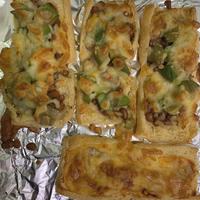 - 5 アルミホイルを敷いた天板にのせ、チーズが溶けて焼き色がつくまでオーブントースターで5分程焼きます。