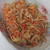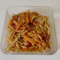 - 1 菊芋は皮つきのまま千切りにします。にんじんは千切りにします。