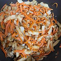 - 4 にんじんに火が通ったら水、めんつゆを入れて中火で炒めます。
