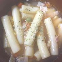 - 6 コンソメとパスタを加え、パスタのパッケージに表記してある時間煮ます。