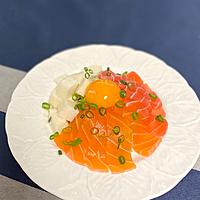 マグロ&サーモンに甘辛だれが絡まり、トッピングのアボカドと卵黄の濃厚さがあいまって最高に美味しい海鮮丼になりました!!