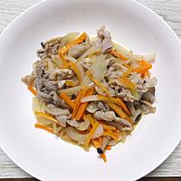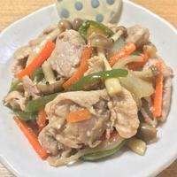 具材は豚こま肉約200g、ピーマン1個、人参をプラス、椎茸をしめじ1/2株で代用。