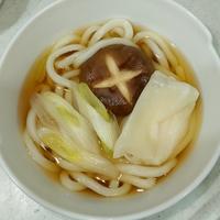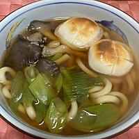 旦那さまが肉入りのうどんが好きなので、かまぼこの代わりに鶏むね肉を入れてしいたけをプラスして作りました⭐️(長ネギ分かりづらいけど入ってます)