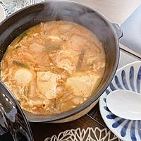 アツアツグツグツなので粉唐辛子無し、キムチ多めでちょうど良い辛さで食べやすかったです。汗をかくほどあったまりました。