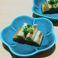 - 2 フライパンにオリーブオイルを入れて中火で熱し、1を入れて1分程焼きます。両面に焼き色が付いたら火からおろします。