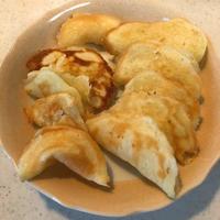 - 5 フライパンに4の1/12量を直径6cmの大きさに伸ばしたら1分ほど焼き裏返します。