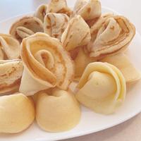 生地は冷めると折り曲げられなくなってしまいますので、生地を焼く際は、1枚か2枚ずつ焼き、手早く作業してください。