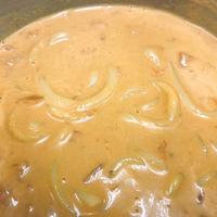 1、鍋にココナッツミルク(1缶)トマト缶(1缶)を入れ中火で煮込む。