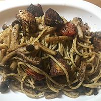 塩胡椒のみしたブリを白ワインでポワレしてほぐして使用、ミニトマトはあえて潰して旨みを出してます。鷹の爪と茹で汁追加、シメジの代わりにエリンギ使用、仕上げにイタリアンパセリたっぷり入れてます。ブリ一切れで2人分でちょうどよかったです。他の魚の切り身でもまた作ってみます。