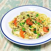 ブリとしめじのオイルパスタのご紹介です。ブリとしめじの旨味が、オイルパスタとよく合います。素材の旨味を味わうため、シンプルな味つけに仕上げています。ぜひお試しくださいね。