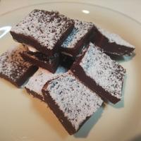 - 5 固まったら型から外します。包丁をお湯で温めて水気を拭き取り、2cm角に切ります。ココアパウダーをまぶしてミントをのせて完成です。