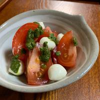バジルぺーストは以前他のレシピで作ったもの。^_^カプレーゼの新しい食べ方、こちらの方が好きです。