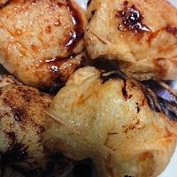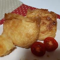 油揚げの中に、じゃがいもとチーズを入れて甘辛く仕上げました。甘辛いジューシーな油揚げと、チーズが入ったじゃがいもの組合せが、お酒にもよく合います。チーズ以外にもハムやコーン等を入れてアレンジも楽しめます。是非お試しくださいね。