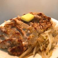 スライスニンニクで炒めたフライパンにバターとすりおろしニンニクでステーキを焼き、その後肉の脂でもやしをサッと炒めました!