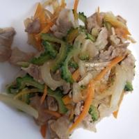 玉ねぎもプラス。ゴーヤが全然苦くなく、しっかり味で美味しい!豆板醤を加えても美味しそうです。