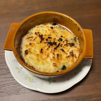 ホワイトソースがレンジで出来てめっちゃ簡単でした。予熱したオーブンで12分。ボリューム足すなら鶏肉とかかな、ベースはこのレシピで作ると簡単です。
