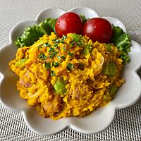 - 3 粗熱を取ったかぼちゃに(A)を混ぜ、ハムとさっと和えます。
