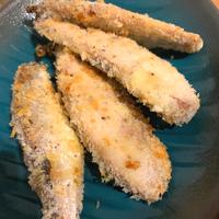今回は2回目。レシピ通りだとあっさりドライな仕上がりだったので、パン粉に粉チーズを少し加えてグリルで焼く時にオリーブオイルを回し掛けました。これでカサカサせずにすごーく美味しくなったのでリピート確定です👍ウスターソースでいただきました。