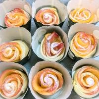バラの形のりんごがとてもかわいい、アップルパイのご紹介です。型にぎっしりと敷き詰めたバラの形のアップルパイは、花束のようでとても可愛いですよ。冷凍パイシートを使えば簡単に作れるので、ぜひお試しくださいね。