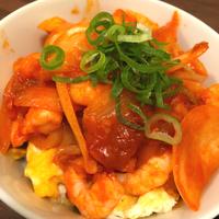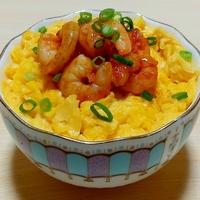 ふわとろ卵にエビチリをのせていただくどんぶりごはんのご紹介です。ピリ辛のエビチリにたまごのまろやかさがとてもよく合います。たっぷり入れた刻みネギがとてもよいアクセントになります。お手軽に作れるのでぜひお試しくださいね。