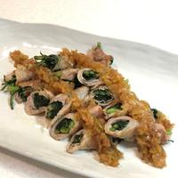 香りが良い春菊を、ジューシーな豚バラ肉で巻き、さっぱりとした生姜だれで仕上げた一品です。たれの味付けも、ポン酢やめんつゆなどのお手軽な材料で簡単に味が調うので、お料理初心者の方にもオススメのレシピです。