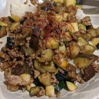 ナスとズッキーニのピリ辛そぼろ丼 レシピ・作り方
