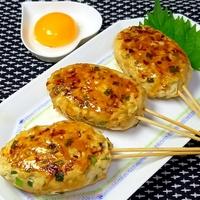 香り高い大葉とミョウガ、梅肉が織りなすさっぱりとした風味が特徴のつくねです。鶏ひき肉をベースに、ネギや生姜なども加えることで、ふんわりジューシーな食感に仕上がります。卵黄をからめて食べると、まろやかでコクのある味わいに変化。お弁当のおかずやおつまみとしても人気で、冷めても美味しく楽しめます。串に刺して焼くと、見た目も居酒屋さんのような本格派の一品に。
