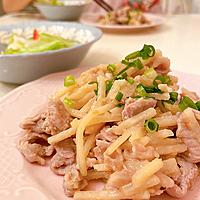 しゃきしゃきポテトと豚バラの節約みそバター炒め レシピ・作り方