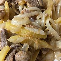 - 5 豚バラ肉にも火が通ったら(A)で味を調え、火から下ろします。