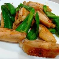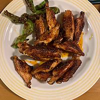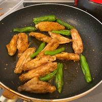 万願寺とうがらしで。手羽中は半冷凍のまま①を漬け込んだから?か少し味薄め。七味もビビって少し少なめにしたからか、夫からは辛い!よりもケンタッキーの味だねと。。私には結構辛かったけどな、、でも美味しかった!☆☆☆☆
