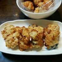 この前は鶏挽肉 今日はムネ肉で(^-^)もう少し細かくたたけばよかったかも(。-_-。)お麩は味噌汁麩をかなり入れて味付けに鶏がらスープの素も足してみました!ケチャップをつけるのでこれくらい薄味でよかったみたいです♡揚げたて最高です)^o^(