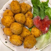 量を増やして作ったのですが、ふわふわに仕上がりませんでした。ナゲットボールになりました。